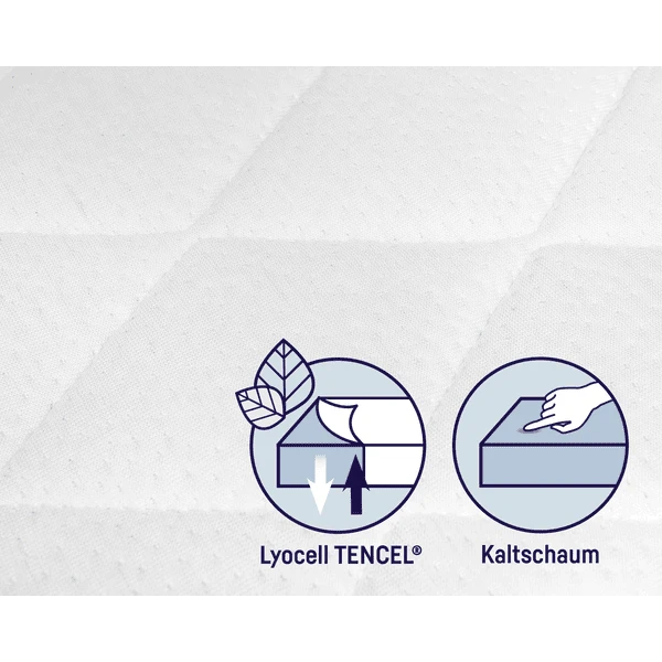 Las materias primas de alta calidad y su gran adaptabilidad convierten la espuma en frío en el material ideal para los colchones infantiles. Además, la espuma en frío es más transpirable que otras espumas. Además, se caracteriza por su alta capacidad de carga, durabilidad y larga vida útil. La espuma fría es ecológica e indicada para personas alérgicas. - Funda funcional Lyocell TENCEL® Fresh & Dry