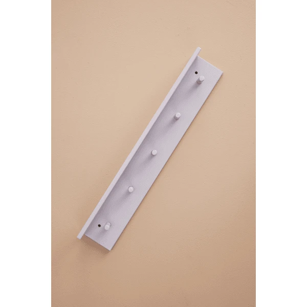 Estantería y tabla de ganchos en uno. Los 5 ganchos están distribuidos uniformemente, por lo que se pueden colocar varios estantes uno al lado del otro. Disponible en 4 colores diferentes.