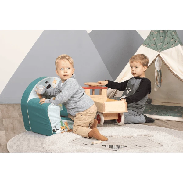 No sólo el asiento, sino también los reposabrazos son de espuma suave y están cubiertos de algodón. Gracias a su gran colorido y a su vistoso estampado, es el centro de atención absoluto en la habitación de los niños. Su hijo se sentirá seguro y protegido en este sillón, que invita a los más pequeños a relajarse y dormitar. Gracias a la espuma, el asiento es excepcionalmente ligero y a la vez estable. Así, incluso los más pequeños pueden empujar el sillón sin esfuerzo de un lado a otro de la habitación.