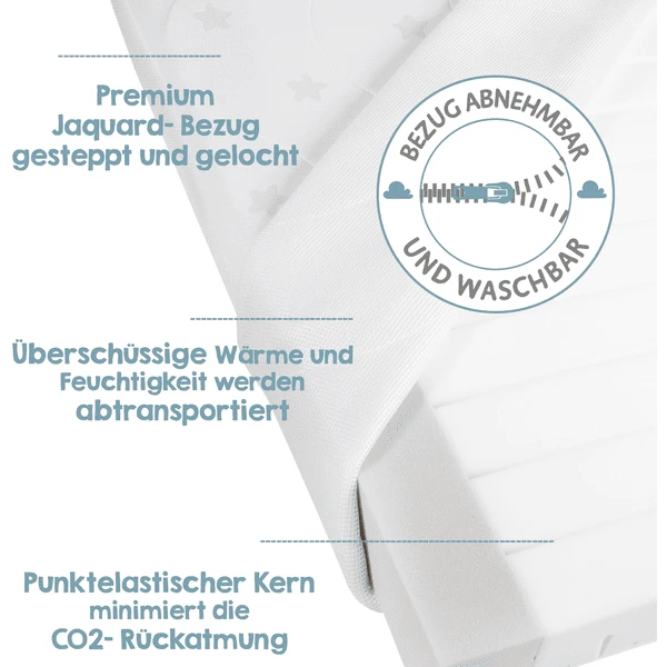 seguridad. La funda de jacquard extraíble, acolchada y perforada del colchón de