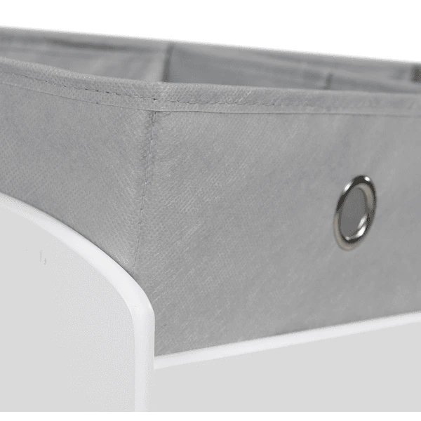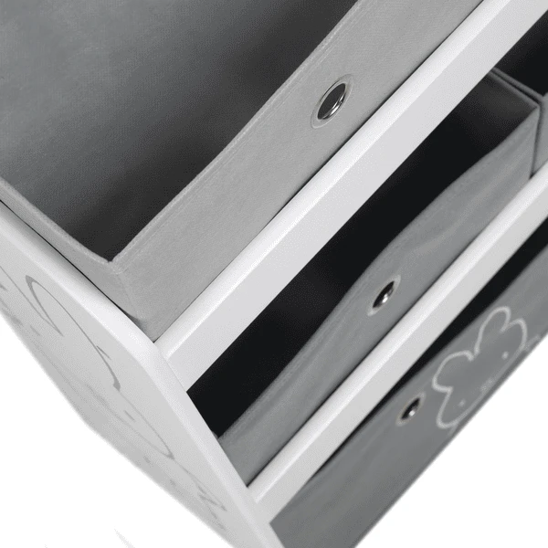 Gracias a las grandes asas en forma de Metal L, las cajas de tela se pueden retirar fácilmente y volver a colocar en el estante de juguetes. La caja de tela más baja y más grande está impresa con un lindo conejito Miffy para combinar con el motivo de impresión de los paneles laterales del estante de almacenamiento. Con otros productos de la colección «Miffy roba «, la habitación de los niños puede transformarse en un paraíso Miffy para niños y niñas. Con 5 cajas de tela.